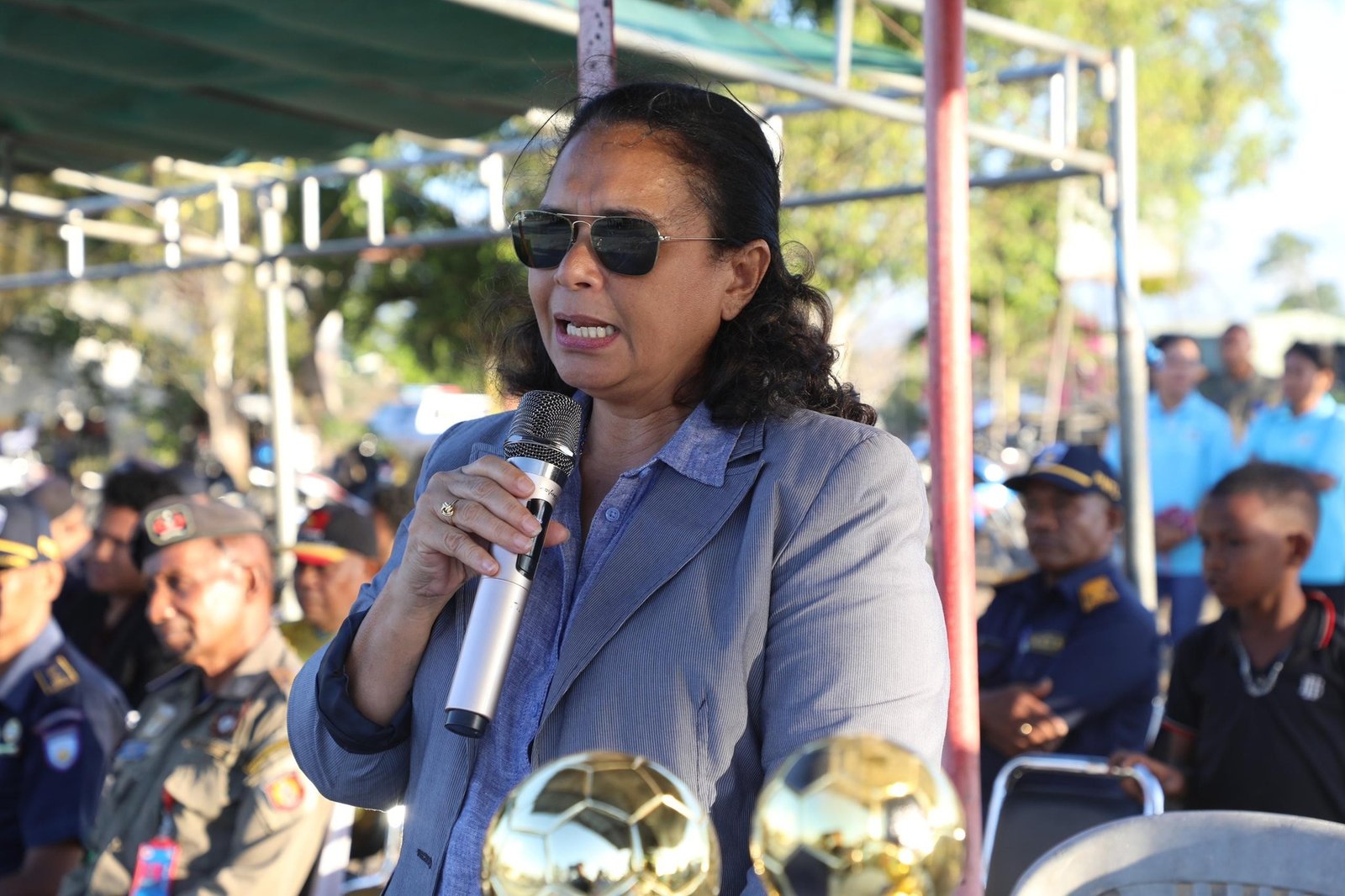 Prezidente Autoriadade Munisipiu Dra. Veneranda E. M. Lemos Martins hateten ohin ita bele haree iha finál oinsa maka feto sira bele hatudu sira-nia abilidade iha desportu ho kualidade iha kampu laran furak tebes e ami observa husi liur haree ona jogadores ida ne’ebé maka di’ak maibé ita boot sira-nia formadór, treinadór sira no asosiasaun futebol mak sei hatene oinsa maka atu halo selesaun ba kada ekipa, “Ha’u mós hato’o parabéns ba manan nain sira hotu, labele triste, lakon ka manan ne’e laos kestaun importante mak hatudu ita-nia Jogu ho kualidade ha’u kontente tebes haree alin feto sira ne’ebé mak hatudu jogu kapas tebes iha kampu laran” hateten SE PAM Baucau.
